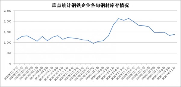 本旬,重點統(tǒng)計鋼鐵企業(yè)鋼材庫存量1382.20萬噸,比上一旬增加53.60萬噸,增幅53.60%;比年初增加428.95萬噸,增幅45.00%。(中國鋼鐵工業(yè)協(xié)會)