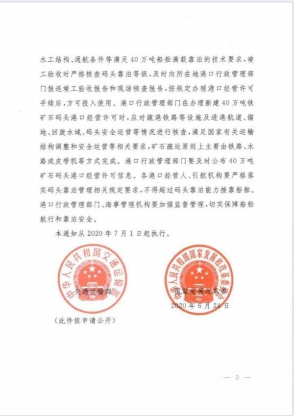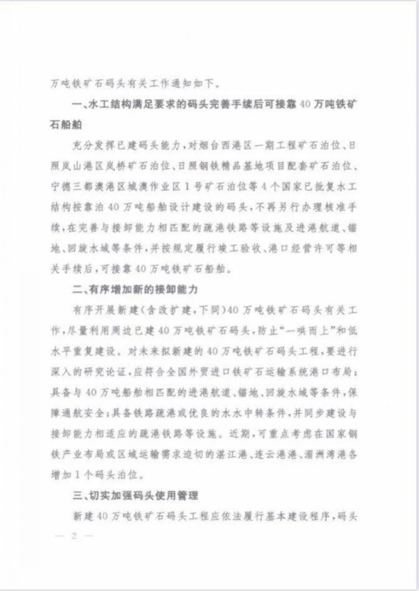 實(shí)際上,根據(jù)下文所附的《通知》全文,我們可以看到除了日照嵐山港區(qū)嵐橋礦石泊位外,還有煙臺西港區(qū)一期工程礦石泊位、日照鋼鐵精品基地項(xiàng)目配套礦石泊位和寧德三都澳港區(qū)城澳作業(yè)區(qū)1號礦石泊位等共計(jì)四個40萬噸級泊位獲批。