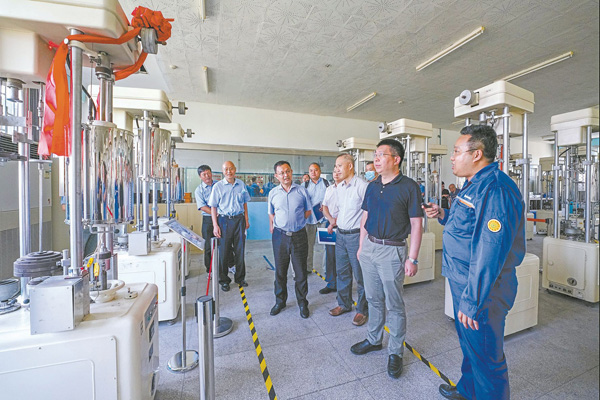 圖為專家們在寶鋼的高溫持久蠕變試驗室觀看試驗結果。(劉繼鳴攝)
