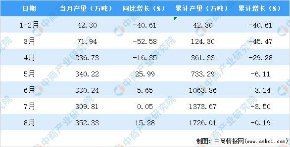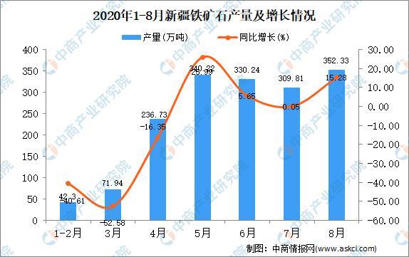 2020年8月新疆鐵礦石產(chǎn)量及增長(zhǎng)情況