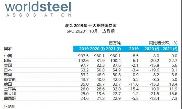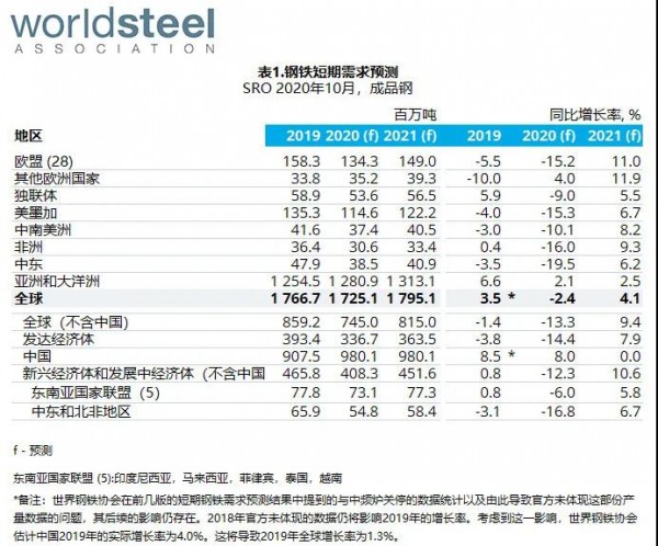 發(fā)達(dá)經(jīng)濟(jì)體的鋼鐵需求總量預(yù)計(jì)2020年將下跌14.9%,但2021年將增長(zhǎng)7.9%。