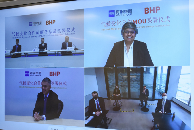 應(yīng)對(duì)氣候變化是人類共同的事業(yè)。3月5日,世界鋼鐵協(xié)會(huì)主席、河鋼集團(tuán)黨委書記、董事長(zhǎng)于勇與必和必拓首席執(zhí)行官韓慕睿(Mike Henry)圍繞減碳與氣候變化以及進(jìn)一步加強(qiáng)雙方在低碳冶金等領(lǐng)域合作等議題進(jìn)行視頻交流,會(huì)上,雙方視頻簽署共同應(yīng)對(duì)氣候變化戰(zhàn)略合作諒解備忘錄,河鋼集團(tuán)副總經(jīng)理王新東和必和必拓首席商務(wù)官潘文怡(Vandita Pant)代表雙方簽約。河鋼集團(tuán)副總經(jīng)理劉鍵主持簽約儀式。