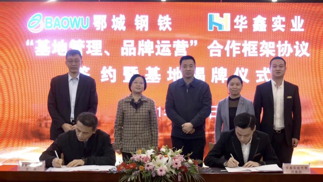 2021年4月8日,鄂城鋼鐵與大冶市華鑫實業(yè)有限公司(簡稱大冶華鑫)及大冶市政府相關(guān)領(lǐng)導(dǎo)齊聚大冶,舉行“基地管理+品牌運營”框架協(xié)議簽約暨基地揭牌儀式。