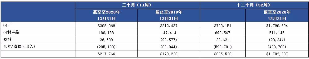 2020年第四季度,由于薄板及厚板廠的定價上漲,紐柯的盈利較第三季度有所改善。鋼廠也將繼續(xù)受益于棒材和結(jié)構(gòu)鋼廠的強勁業(yè)績,體現(xiàn)了該公司產(chǎn)品的多樣性。由于非住宅建筑市場的持續(xù)彈性,2020年第四季度又是鋼材的旺季。原材料的盈利水平較第三季度有所提升,原因是原材料平均售價上漲,直接還原鐵設(shè)施的財務(wù)表現(xiàn)有所改善。