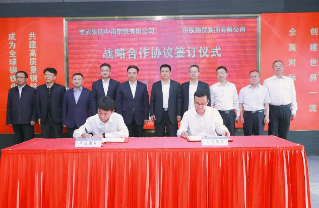 近日,寶武集團中南鋼鐵舉行戰(zhàn)略合作協(xié)議集中簽約儀式,分別與中鐵物貿(mào)集團有限公司、中建科工集團有限公司和物產(chǎn)中大金屬集團有限公司簽訂戰(zhàn)略合作協(xié)議。