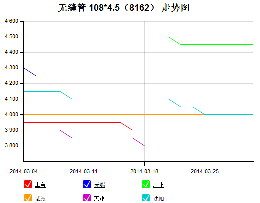 圖13:2014年3月份無縫管市場108*4.5(8162)價(jià)格走勢(單位:元/噸)