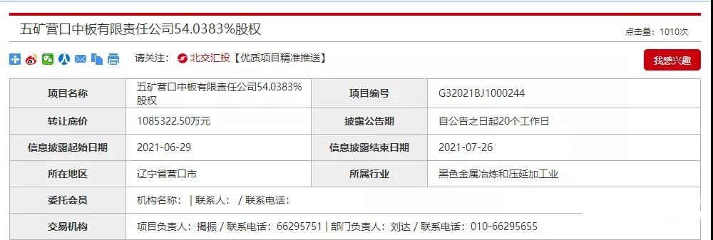 根據(jù)轉(zhuǎn)讓消息,該項目無受讓方資格條件,意向受讓方須在受讓資格確認后3個工作日內(nèi)支付人民幣20億元的交易保證金至北交所指定賬戶。信息披露期滿,如征集到兩個及以上符合條件的意向受讓方,選擇網(wǎng)絡(luò)競價方式確定受讓方。