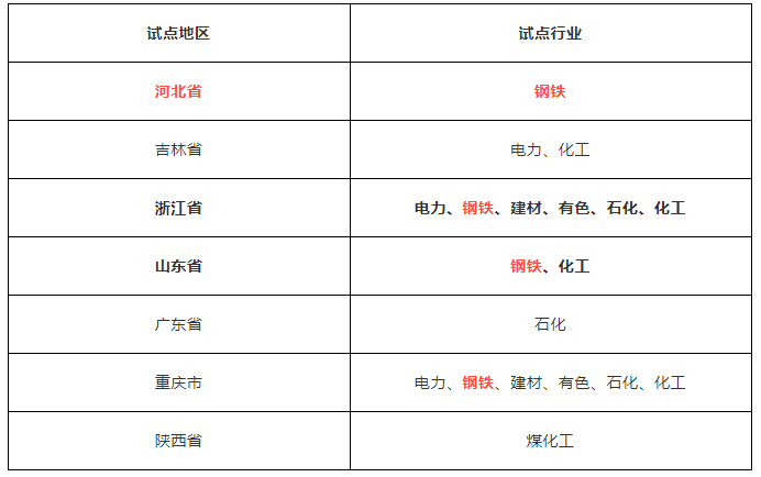 試點(diǎn)行業(yè)為電力、鋼鐵、建材、有色、石化和化工等重點(diǎn)行業(yè),試點(diǎn)地區(qū)根據(jù)各地實(shí)際選取試點(diǎn)行業(yè)和建設(shè)項(xiàng)目(詳細(xì)名單見附件1)。除上述重點(diǎn)行業(yè)外,試點(diǎn)地區(qū)還可根據(jù)本地碳排放源構(gòu)成特點(diǎn),結(jié)合地區(qū)碳達(dá)峰行動(dòng)方案和路徑安排,同步開展其他碳排放強(qiáng)度高的行業(yè)試點(diǎn)。