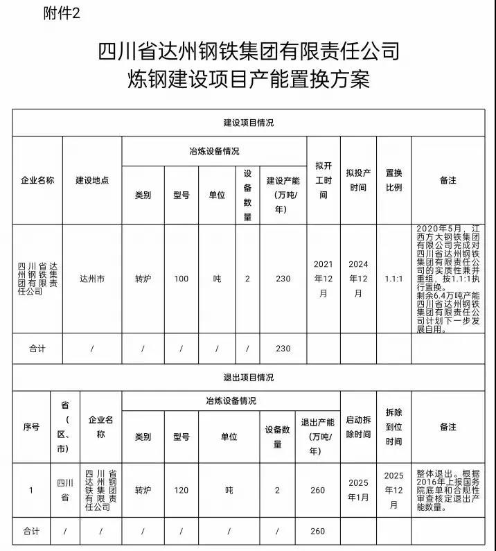 按照《國務(wù)院關(guān)于化解產(chǎn)能嚴(yán)重過剩矛盾的指導(dǎo)意見》(國發(fā)〔2013〕41號)、《國務(wù)院關(guān)于鋼鐵行業(yè)化解過剩產(chǎn)能實(shí)現(xiàn)脫困發(fā)展的意見》(國發(fā)〔2016〕6號)、《工業(yè)和信息化部關(guān)于印發(fā)鋼鐵水泥玻璃行業(yè)產(chǎn)能置換實(shí)施辦法的通知》(工信部原〔2017〕337號)和《工業(yè)和信息化部關(guān)于印發(fā)鋼鐵行業(yè)產(chǎn)能置換實(shí)施辦法的通知》(工信部原〔2021〕46號)要求,我廳于2021年8月24日-2021年9月18日對四川省達(dá)州鋼鐵集團(tuán)有限責(zé)任公司建設(shè)項目產(chǎn)能置換方案進(jìn)行了公示,公示期無異議,現(xiàn)將四川省達(dá)州鋼鐵集團(tuán)有限責(zé)任公司建設(shè)項目產(chǎn)能置換方案予以公告,歡迎社會公眾進(jìn)行監(jiān)督。
