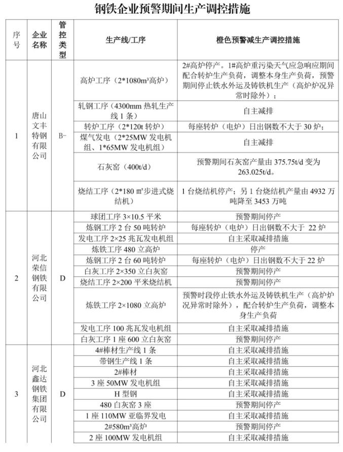 鋼鐵企業(yè)預(yù)警期間生產(chǎn)調(diào)控措施