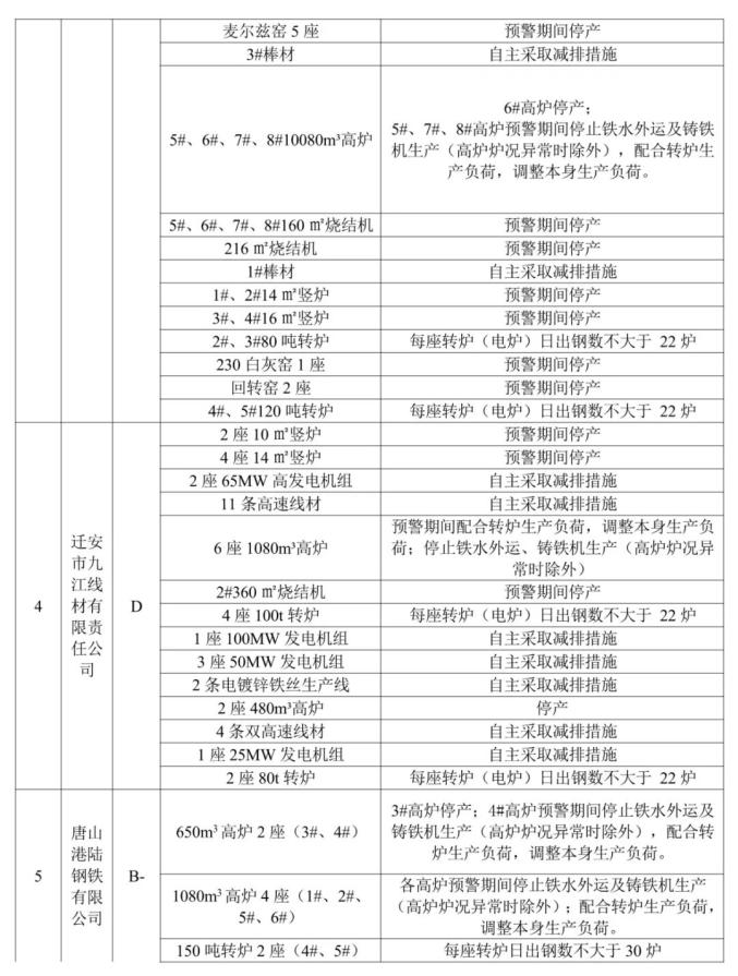 3.水泥熟料企業(yè)(特種水泥除外)。冀東啟新、冀東三友、冀東灤州、冀東唐山分公司、泓泰水泥自主減排;飛龍水泥、燕東水泥、燕南水泥、曙光強(qiáng)興水泥、磐石水泥、圣龍水泥、耀東水泥、弘也水泥旋窯實(shí)施生產(chǎn)調(diào)控。