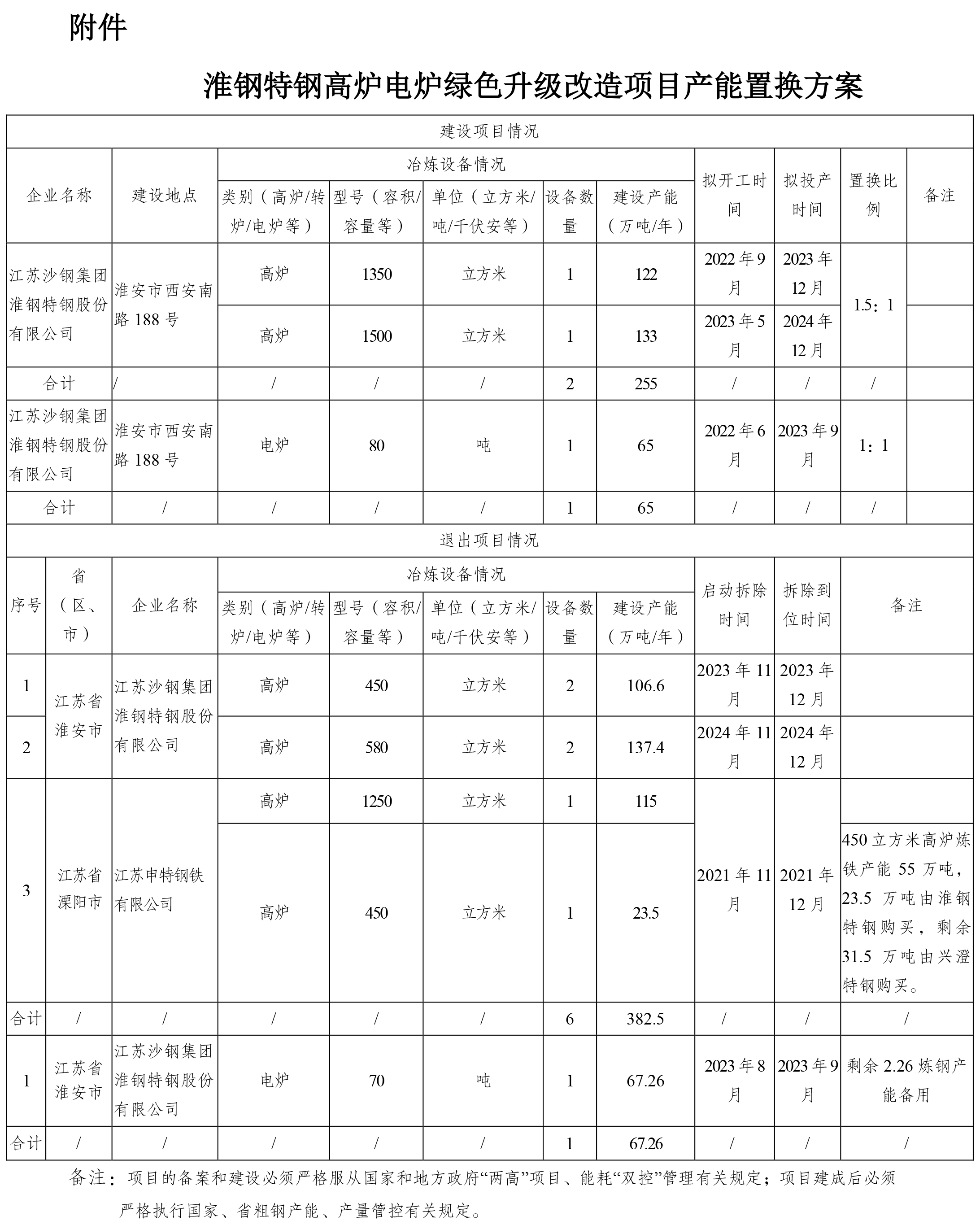 按照《國務(wù)院關(guān)于化解產(chǎn)能嚴(yán)重過剩矛盾的指導(dǎo)意見》、《國務(wù)院關(guān)于鋼鐵行業(yè)化解過剩產(chǎn)能實(shí)現(xiàn)脫困發(fā)展的意見》和《鋼鐵行業(yè)產(chǎn)能置換實(shí)施辦法》要求,我廳自2021年12月3日至2021年12月22日對(duì)江蘇沙鋼集團(tuán)淮鋼特鋼股份有限公司(以下簡稱淮鋼特鋼)高爐電爐綠色升級(jí)改造項(xiàng)目產(chǎn)能置換方案進(jìn)行了公示,公示期間未收到異議?,F(xiàn)予公告,歡迎社會(huì)公眾進(jìn)行監(jiān)督。聯(lián)系電話:025-69652731(業(yè)務(wù)咨詢)、025-69652843(信訪舉報(bào))。