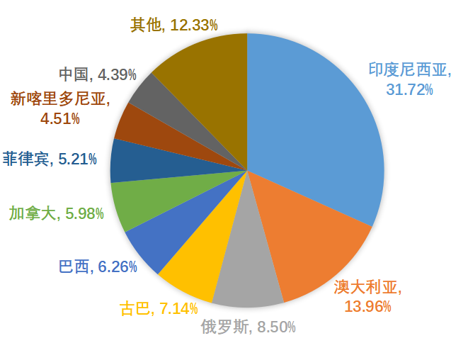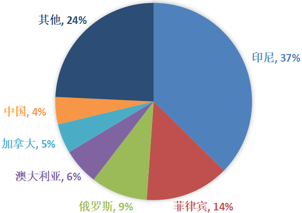 2021主要國家鎳產(chǎn)量占全球比例圖