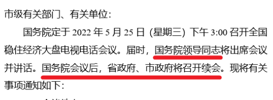 國(guó)務(wù)院5月25日下午15:00召開(kāi)全國(guó)穩(wěn)住經(jīng)濟(jì)大盤電視電話會(huì)議,國(guó)務(wù)院領(lǐng)導(dǎo)同志出席會(huì)議并講話。