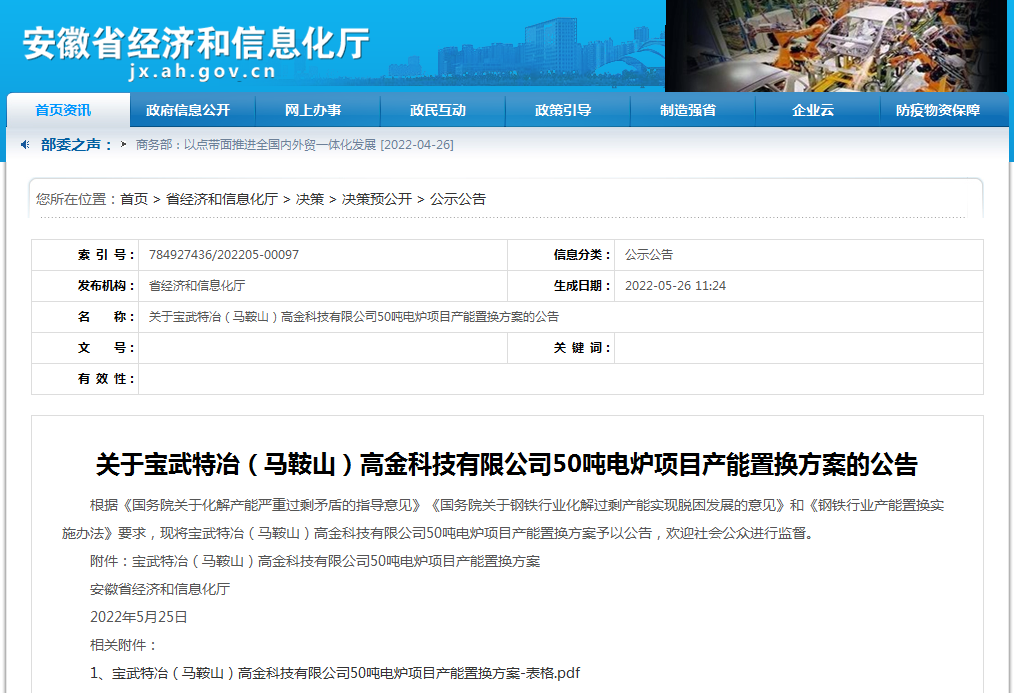 附件:寶武特冶(馬鞍山)高金科技有限公司50噸電爐項目產(chǎn)能置換方案