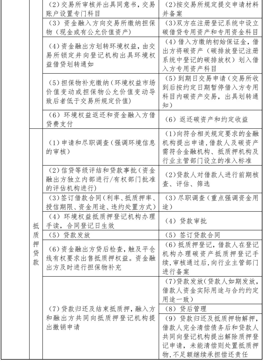 表1 《碳金融產(chǎn)品》和《環(huán)境權(quán)益融資工具》中融資工具和實(shí)施流程的對(duì)比