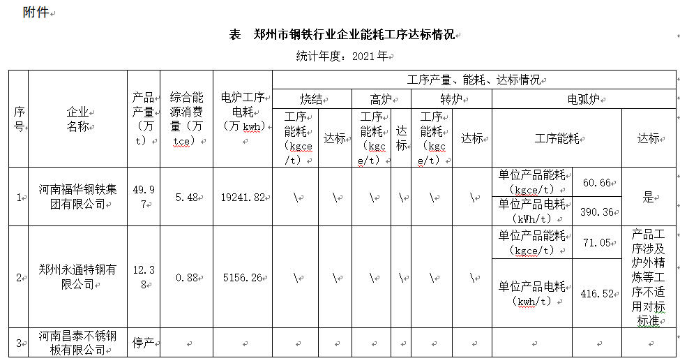 按照《河南省人民政府辦公廳關(guān)于完善差別化電價(jià)政策的通知》(豫政辦明電〔2018〕99號(hào))和《鄭州市工業(yè)和信息化局關(guān)于開展2022年階梯電價(jià)執(zhí)行政策專項(xiàng)監(jiān)察的通知》(鄭工信節(jié)能〔2022〕9號(hào))有關(guān)要求,鄭州市節(jié)能中心對(duì)全市鋼鐵、水泥、電解鋁行業(yè)企業(yè)2021年度能源消耗情況開展專項(xiàng)監(jiān)察工作,現(xiàn)將鋼鐵能耗監(jiān)察結(jié)果公示如下,如有異議,請于公示期內(nèi)以書面形式實(shí)名向鄭州市工信局反映。