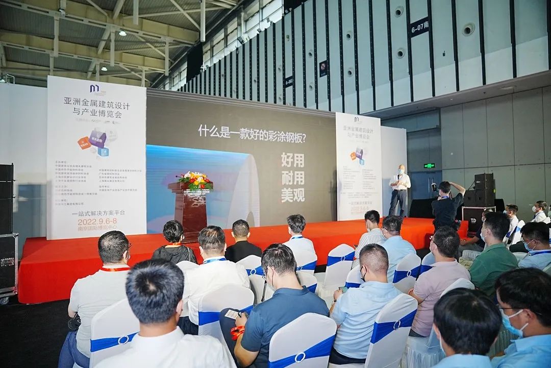 論壇上,新美達(dá)市場部曹峰總監(jiān)發(fā)表了“中國涂鍍產(chǎn)品與鋼結(jié)構(gòu)圍護(hù)系統(tǒng)發(fā)展趨勢探討”的主題演講,從表現(xiàn)力、適配性、產(chǎn)品保障三個(gè)維度,闡述如何打造一塊高端的彩涂板。