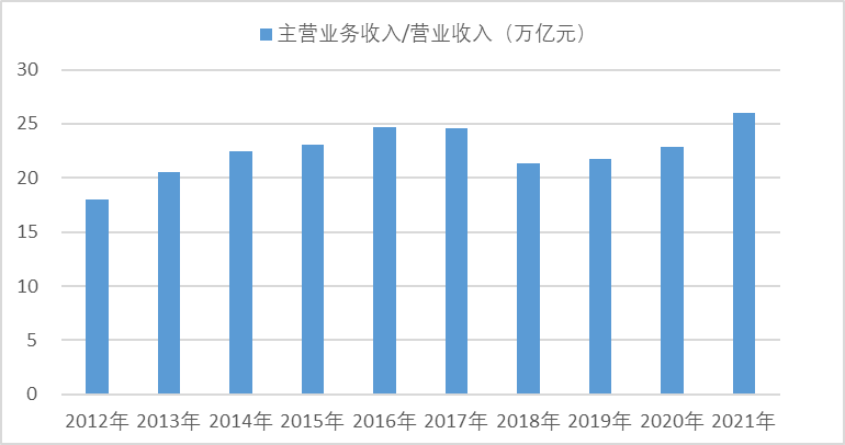 2012-2021年機(jī)械工業(yè)主營業(yè)務(wù)收入/營業(yè)收入