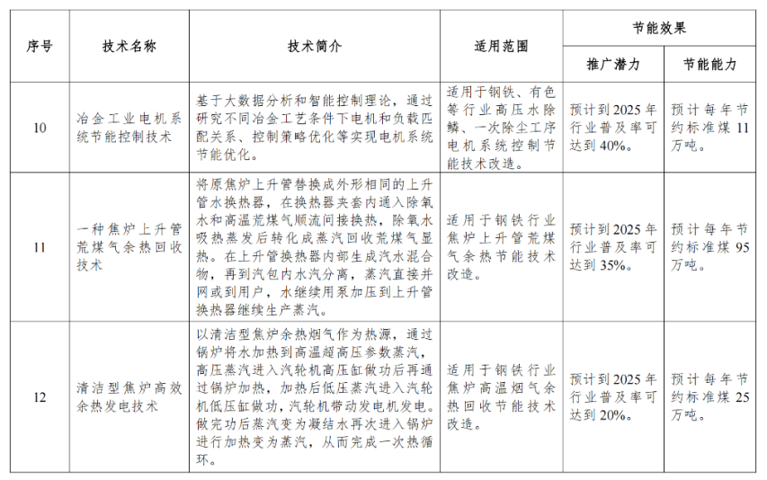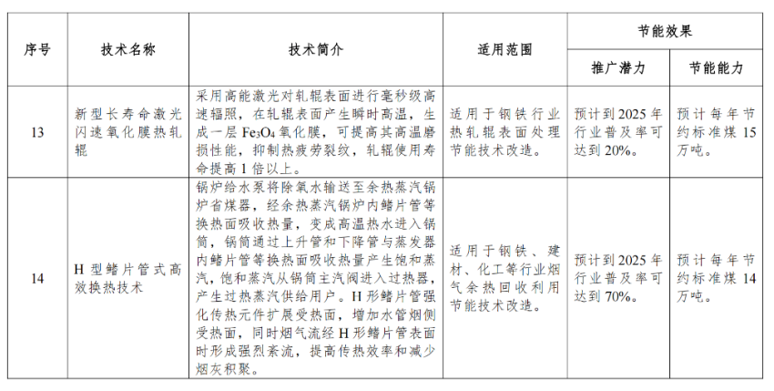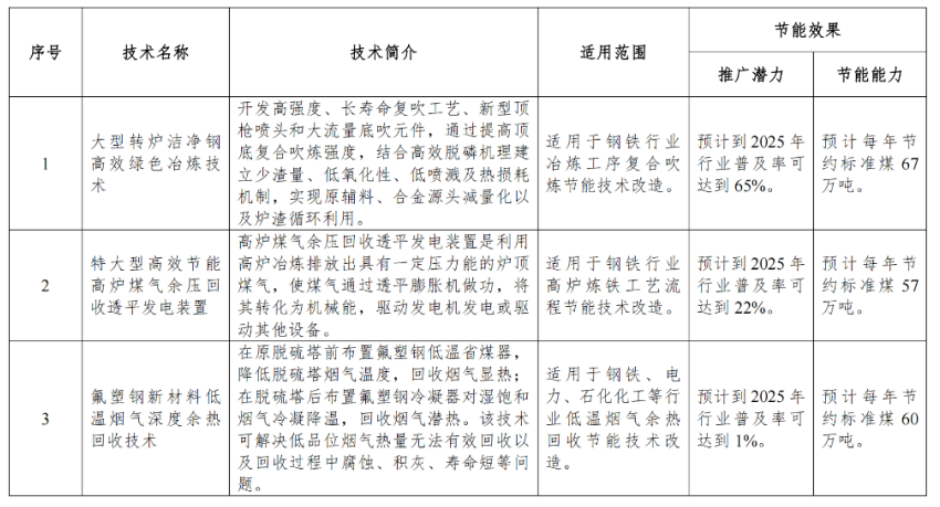 其中,鋼鐵行業(yè)14項(xiàng)節(jié)能提效技術(shù)入選,具體如下: