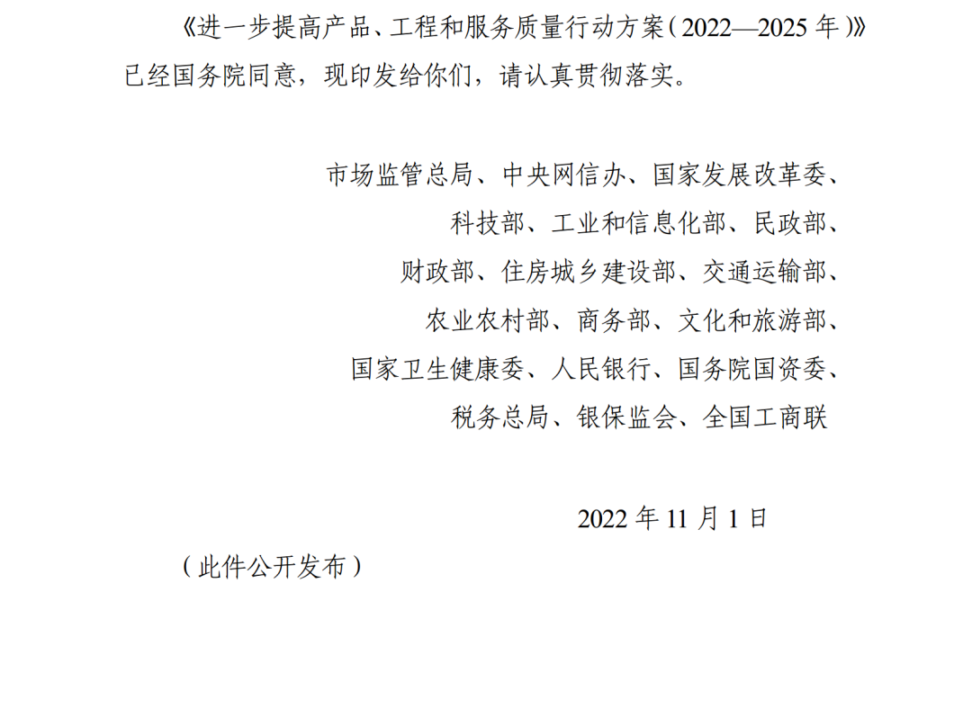 進(jìn)一步提高產(chǎn)品、工程和服務(wù)質(zhì)量行動(dòng)方案(2022—2025年)