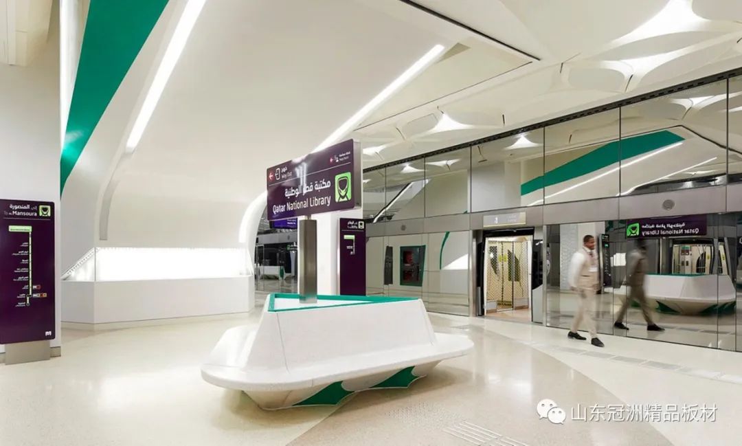 多哈地鐵輕軌由紅色,綠色和金色三條線路組成,共有37個車站,均選用冠洲精品彩涂板,用于車站屏蔽門上框以及內(nèi)部立柱、墻面裝飾等,為車站打造開放、明亮、親切的室內(nèi)環(huán)境增光添彩。