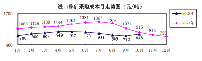 2022年1-10月,煉焦煤累計(jì)采購成本同比增長38.08%;冶金焦同比增長7.54%;國產(chǎn)鐵精礦同比下降26.47%,進(jìn)口粉礦同比下降26.43%;廢鋼同比下降2.33%。