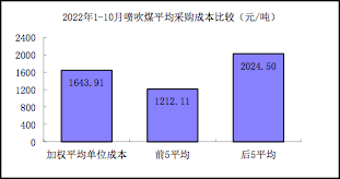 噴吹煤10月份加權(quán)平均折算成干基的采購成本為1786.70元/噸,環(huán)比升高225.87元/噸,升幅為14.47%。1-10月累計(jì)平均折算成干基的采購成本為1643.91元/噸,同比升高407.97元/噸,升幅為33.01%。
