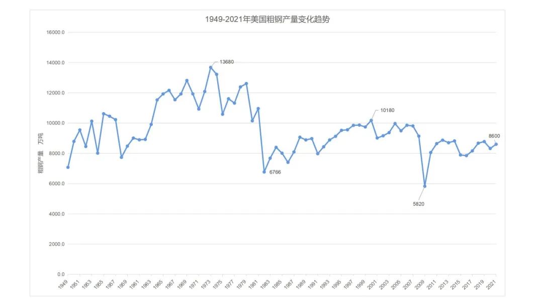 圖1 1949-2021年美國粗鋼產(chǎn)量變化