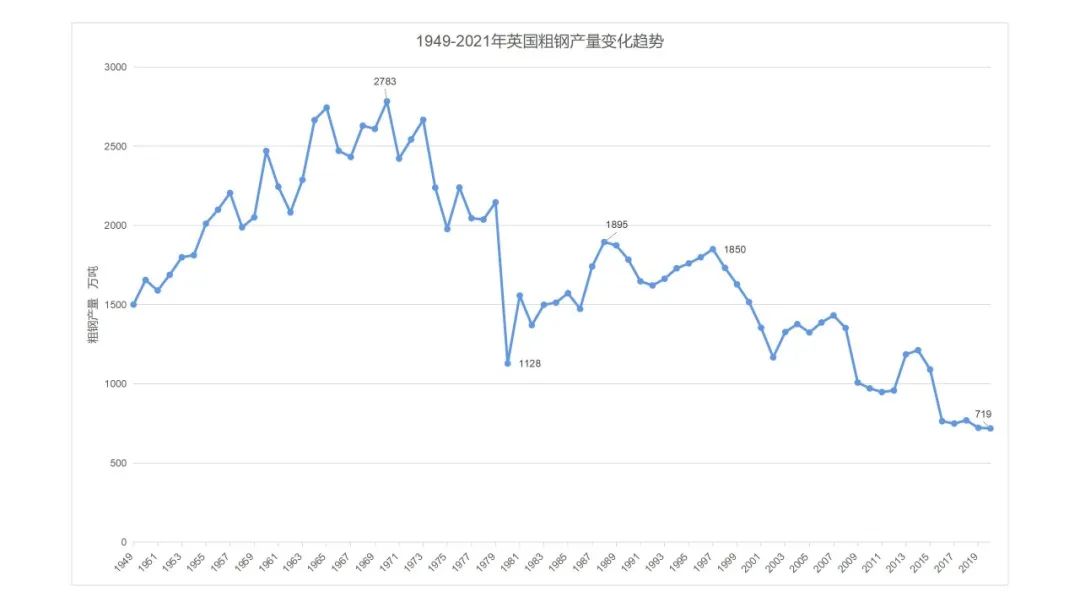 圖4 1949-2021年英國粗鋼產(chǎn)量變化趨勢