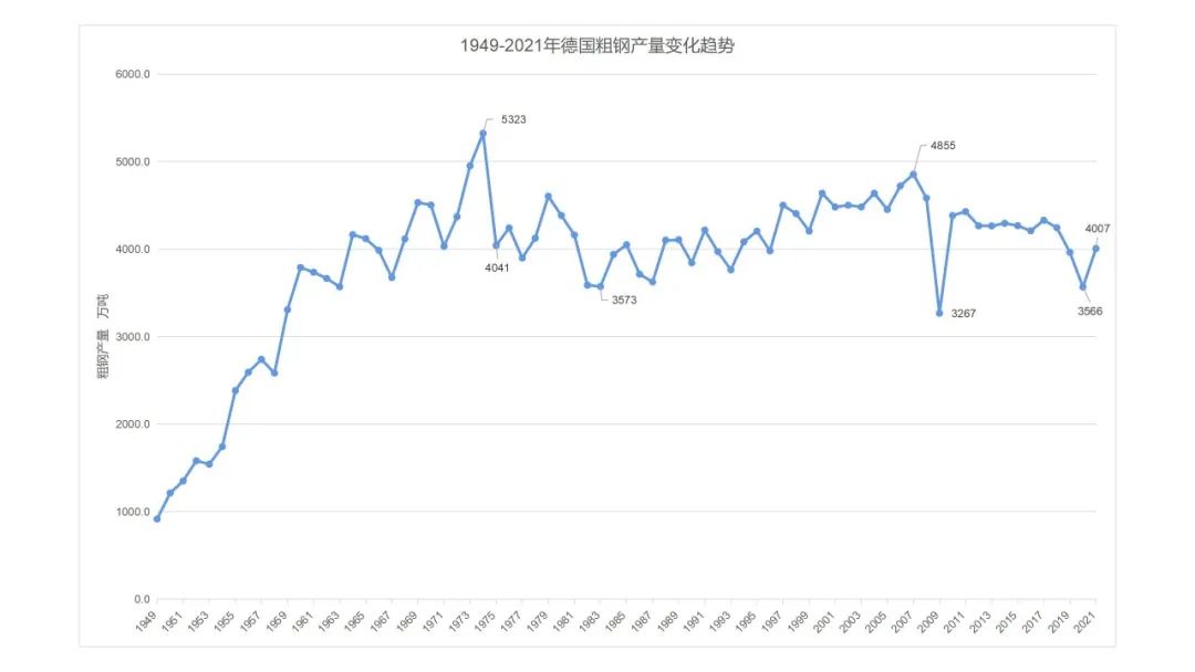圖3 1949-2021年德國粗鋼產(chǎn)量變化趨勢