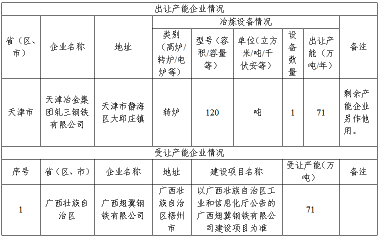 按照《國(guó)務(wù)院關(guān)于化解產(chǎn)能嚴(yán)重過(guò)剩矛盾的指導(dǎo)意見》《國(guó)務(wù)院關(guān)于鋼鐵行業(yè)化解過(guò)剩產(chǎn)能實(shí)現(xiàn)脫困發(fā)展的意見》和《鋼鐵行業(yè)產(chǎn)能置換實(shí)施辦法》要求,現(xiàn)將天津冶金集團(tuán)軋三鋼鐵有限公司產(chǎn)能出讓情況予以公示,歡迎社會(huì)公眾進(jìn)行監(jiān)督。聯(lián)系電話:23313526。公示期為20個(gè)工作日。