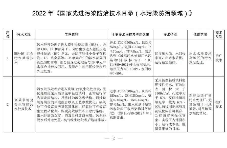 2022年《國家先進(jìn)污染防治技術(shù)目錄(水污染防治領(lǐng)域)》(公示稿)