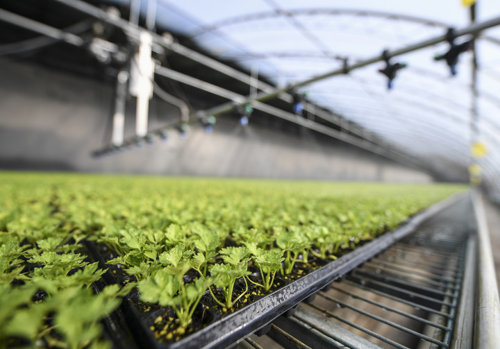 2月1日,賀蘭縣景沃佳禾種苗繁育基地的水肥一體式噴灌機(jī)在給西芹幼苗補(bǔ)水施肥。臨近立春,寧夏銀川市賀蘭縣各主要種苗繁育基地的大棚內(nèi)滿眼綠意,工人們忙著為即將到來的春耕培育幼苗。新華社記者 馮開華 攝