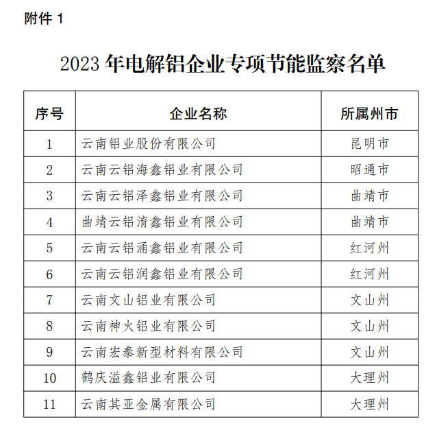 云南省11家電解鋁企業(yè),詳見附件1。