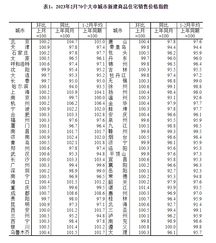 16日,國家統(tǒng)計局公布的數(shù)據(jù)顯示,今年2月份70個大中城市商品住宅銷售價格環(huán)比上漲城市個數(shù)繼續(xù)增加,各線城市商品住宅銷售價格環(huán)比總體上漲,二手住宅價格環(huán)比全線止跌。專家表示,從市場供需兩端、市場預期、政策落實等三方面情況看,房地產(chǎn)市場出現(xiàn)積極變化,企穩(wěn)回升信號明顯。