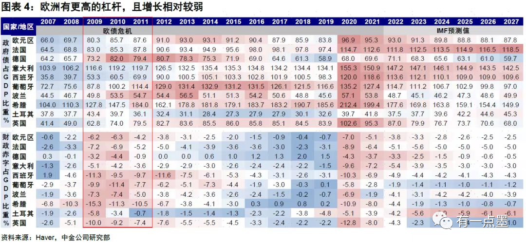 通過今天各路信息的發(fā)酵突然發(fā)現(xiàn),海外金融風(fēng)險(xiǎn)不僅是美國的硅谷銀行引發(fā)的一連串反應(yīng),而且是除了瑞士信貸之外,西歐、南歐等諸多國家都面臨高通脹的壓力、債務(wù)高杠桿的壓力等問題(參照下圖所示)。有經(jīng)濟(jì)學(xué)家稱,若歐洲盲目跟進(jìn)美國的加息政策,后期恐面臨巨大的暴雷危機(jī)。
