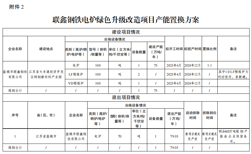 2.聯(lián)鑫鋼鐵電爐綠色升級改造項(xiàng)目產(chǎn)能置換方案