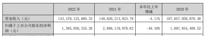 河鋼股份4月27日晚發(fā)布2022年業(yè)績報告。公司2022年實現(xiàn)營業(yè)收入1434.70億元,同比下降4.11%。歸屬于上市公司股東的凈利潤13.95億元,同比下降48.10%。