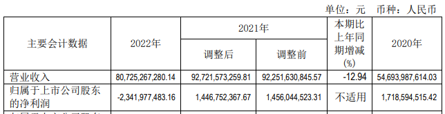柳鋼股份4月27日晚發(fā)布2022年業(yè)績報告。公司2022年實現(xiàn)營業(yè)收入807.25億元,同比下降12.94%。歸屬于上市公司股東的凈利潤-23.42億元.