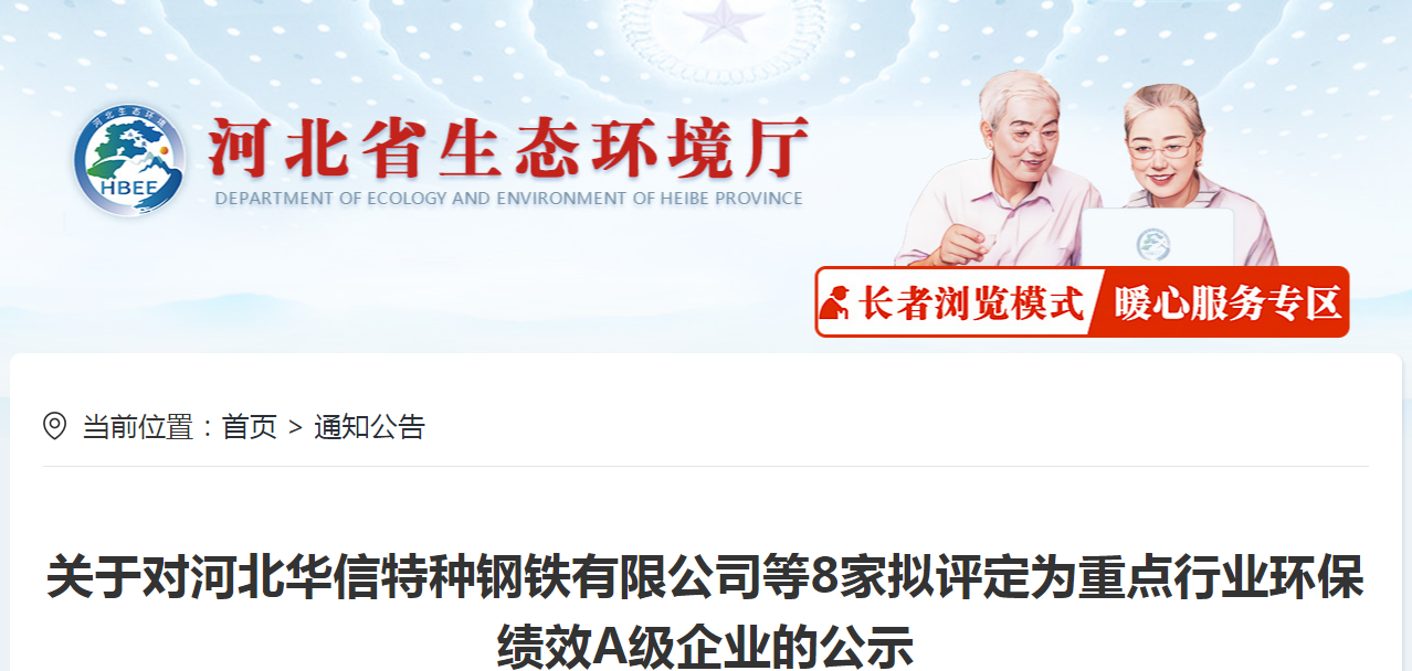 根據(jù)《河北省鋼鐵等7個(gè)重點(diǎn)行業(yè)環(huán)??冃?chuàng)A審核評(píng)定管理辦法(試行)》,現(xiàn)將河北華信特種鋼鐵有限公司等8家擬評(píng)定為重點(diǎn)行業(yè)環(huán)??冃級(jí)企業(yè)予以公示: