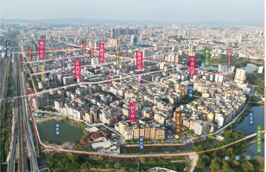 廣州北站東側(cè)老舊小區(qū)成片連片微改造項目北至秀全大道、南至新街河、東至建設(shè)路、西至新民路,占地面積約71.4公頃。