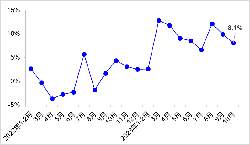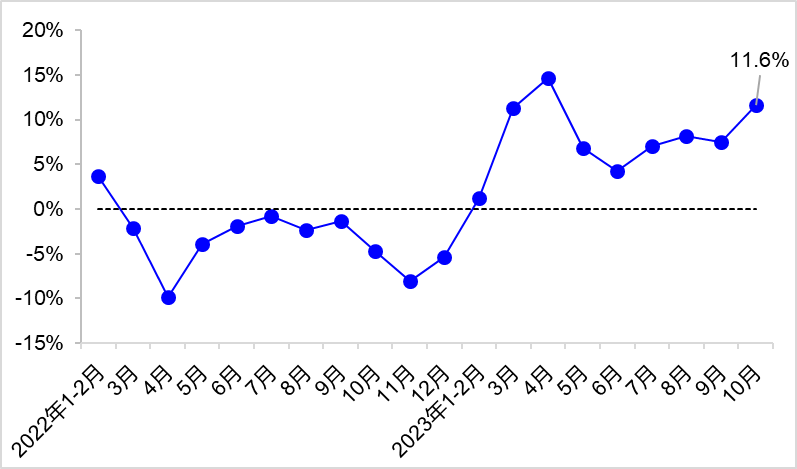 10月,完成營(yíng)業(yè)性貨運(yùn)量48.3億噸,同比增長(zhǎng)11.6%。其中,完成公路貨運(yùn)量35.5億噸,同比增長(zhǎng)12.7%;完成水路貨運(yùn)量8.4億噸,同比增長(zhǎng)11.1%。