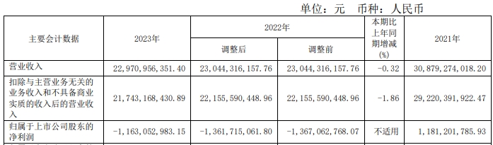 八一鋼鐵4月15日晚間發(fā)布年度業(yè)績報(bào)告稱,2023年?duì)I業(yè)收入約229.71億元,同比減少0.32%;歸屬于上市公司股東的凈利潤虧損11.63億元。