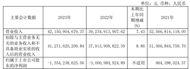 安陽鋼鐵發(fā)布2023年年度報告,報告期內(nèi)公司實現(xiàn)營業(yè)收入421.51億元,同比增長7.43%。歸屬于上市公司股東的凈虧損15.54億元。歸屬于上市公司股東的扣除非經(jīng)常性損益的凈虧損15.99億元。基本每股虧損0.541元。