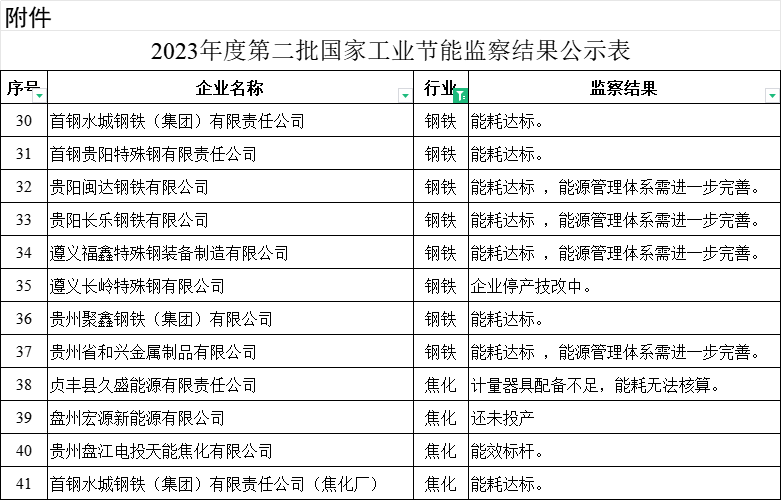 根據(jù)《中華人民共和國節(jié)約能源法》《貴州省節(jié)約能源條例》《工業(yè)節(jié)能監(jiān)察辦法》和《關(guān)于全面推行行政執(zhí)法公示制度執(zhí)法全過程記錄制度重大執(zhí)法決定法制審核制度的實(shí)施意見》(黔府辦發(fā)〔2019〕7號(hào))等要求,現(xiàn)將2023年度第二批國家工業(yè)節(jié)能監(jiān)察結(jié)果予以公示,如有異議,請于公示期內(nèi),書面反饋至貴州省工業(yè)和信息化廳節(jié)能與綜合利用處。