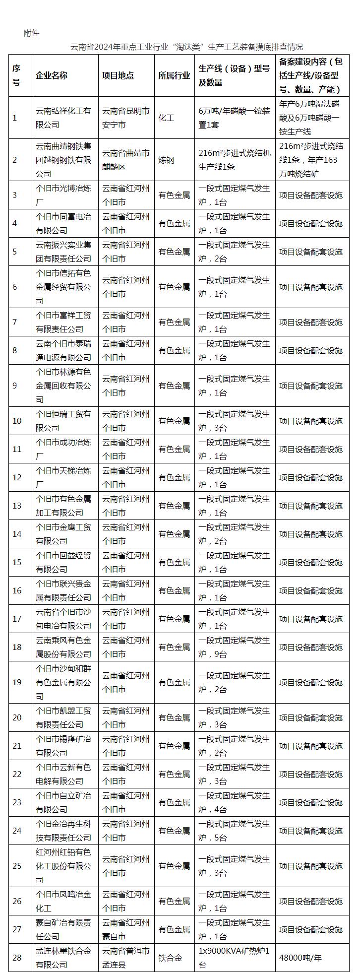 附件:云南省2024年重點(diǎn)工業(yè)行業(yè)“淘汰類”生產(chǎn)工藝裝備摸底排查情況