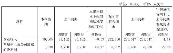寶鋼股份公布,2024年前三季度實(shí)現(xiàn)營(yíng)業(yè)總收入2428.56億元,同比下降4.91%;實(shí)現(xiàn)凈利潤(rùn)58.82億元,同比下降29.56%。