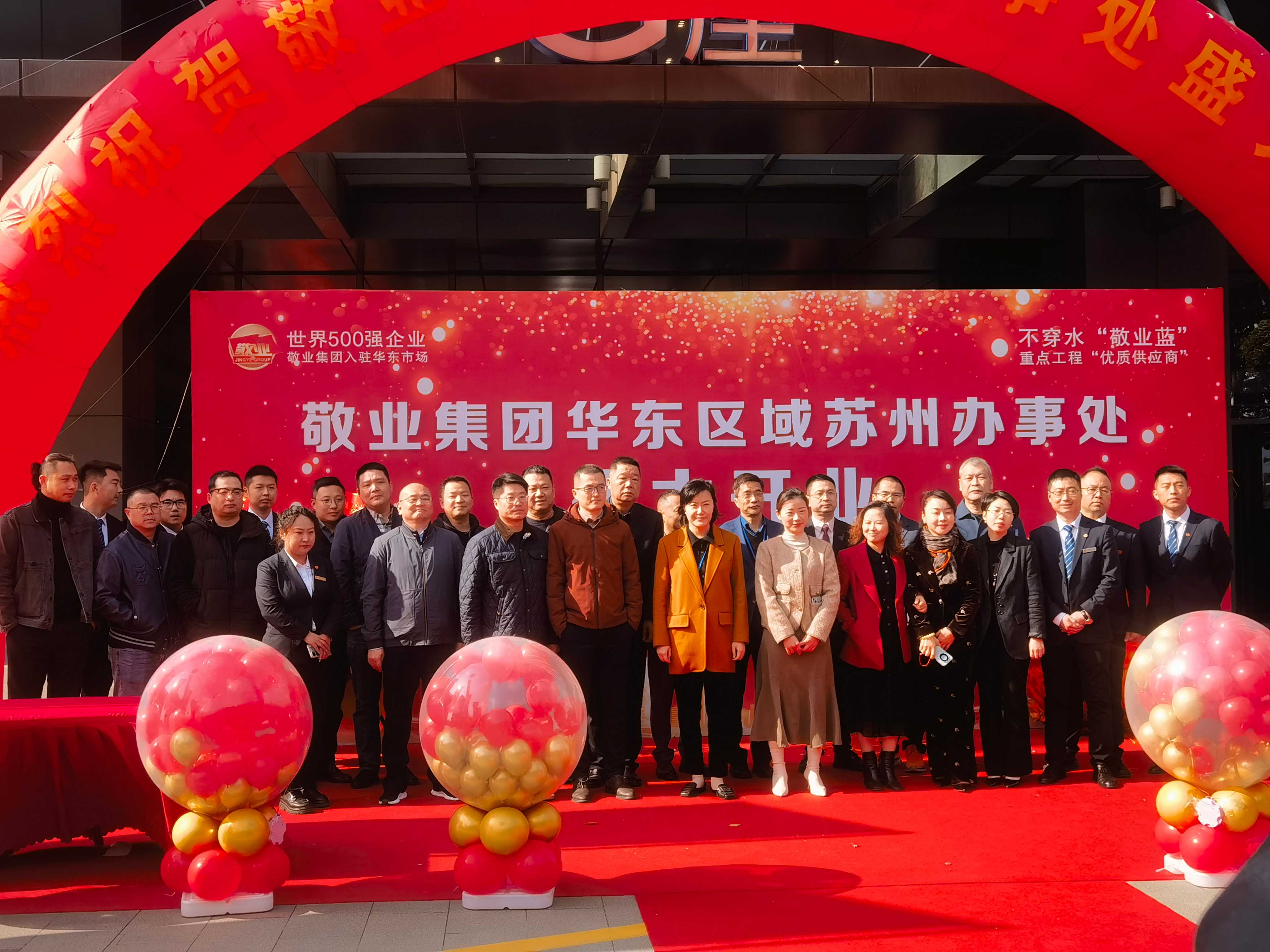 敬業(yè)集團(tuán)華東大區(qū)蘇州辦事處在江蘇省蘇州高新區(qū)和楓科創(chuàng)園盛大開業(yè)。上海鋼聯(lián)電子商務(wù)股份有限公司(簡稱“上海鋼聯(lián)”) 鋼材事業(yè)群優(yōu)特鋼事業(yè)部總經(jīng)理助理曹軼、市場負(fù)責(zé)人徐鐘婷受邀參加。蘇州辦事處開業(yè)儀式由蘇州辦事處負(fù)責(zé)人張偉主持,敬業(yè)集團(tuán)銷售總公司銷售部部長王天球及嘉賓代表江蘇易沅貿(mào)易有限公司總經(jīng)理蕭明致辭,并在現(xiàn)場進(jìn)行以蘇州凡寧金屬材料有限公司 、江蘇易沅貿(mào)易有限公司、常州天之盈鋼材有限公司為代表的戰(zhàn)略合作客戶簽約儀式;儀式最后邀請?zhí)K州凡寧金屬材料有限公司總經(jīng)理鄭壽喜、中外運(yùn)高新物流有限公司總經(jīng)理肖震宇、 蘇州榮鋼物資貿(mào)易有限公司總經(jīng)理徐榮榮、 江蘇易沅電子商務(wù)有限公司總經(jīng)理蕭明作為剪彩嘉賓上臺(tái)剪彩。