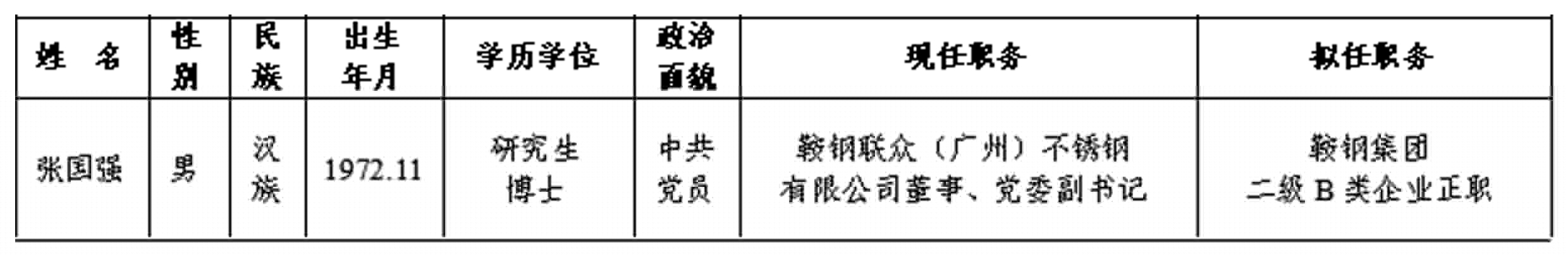 鞍鋼集團(tuán)有限公司1名擬任職領(lǐng)導(dǎo)人員名單